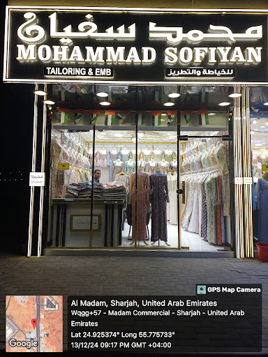 MOHAMMAD SOFIYAN Tailoring & Embroidery in Sharjah offers clothing alteration and modification services at opposite Ajmal Alayoon( ladies saloon. Services include garment resizing, repairs, adjustments, and professional fitting for all clothing types. Rated 5 out of 5 based on 1 reviews.